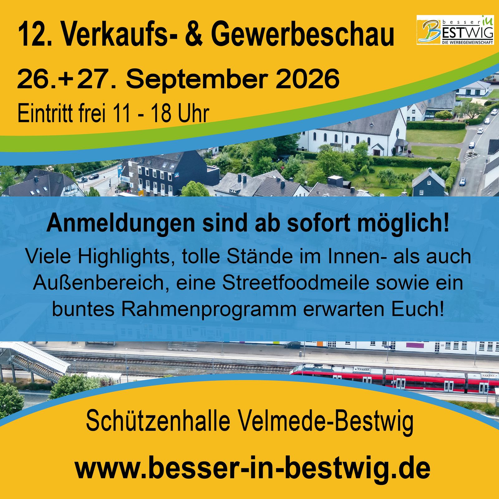 Die Werbegemeinschaft Besser in Bestwig e.V. fördert seit 40 Jahren die Profilierung von Handel, Handwerk, Gewerbe und Tourismus in der Gemeinde Bestwig. Gezielt stellt sie als Interessenvertretung die Stärken der über 130 Mitgliedsunternehmen heraus, fördert die Zusammenarbeit mit Behörden, Vereinen als auch Privatpersonen.